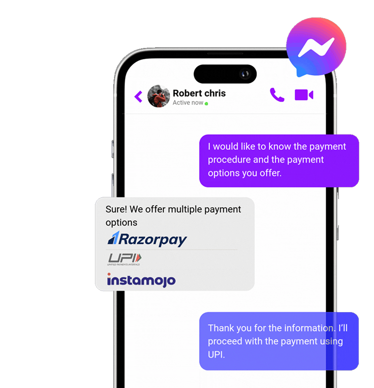 The Messenger Assistant uses NLP and AI to interpret user messages, respond accurately, and escalate when needed. It handles FAQs, customer queries, lead generation, and engagement campaigns — enabling businesses to deliver instant, human-like responses on Messenger.Â